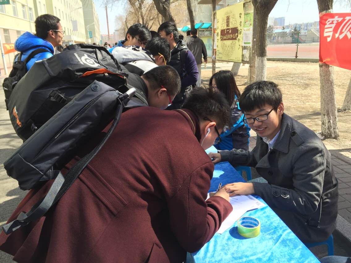 为了提高老员工综合素质,培养老员工社会责任意识,提高同学们积极参与社会实践的热情,丰富校园文化生活,2015年3月25日中午,乐天使和平校区乐天使外联志工部于五号公寓楼下成功举办了“穹顶之下,关爱之上”系列志愿服务活动的开幕式。