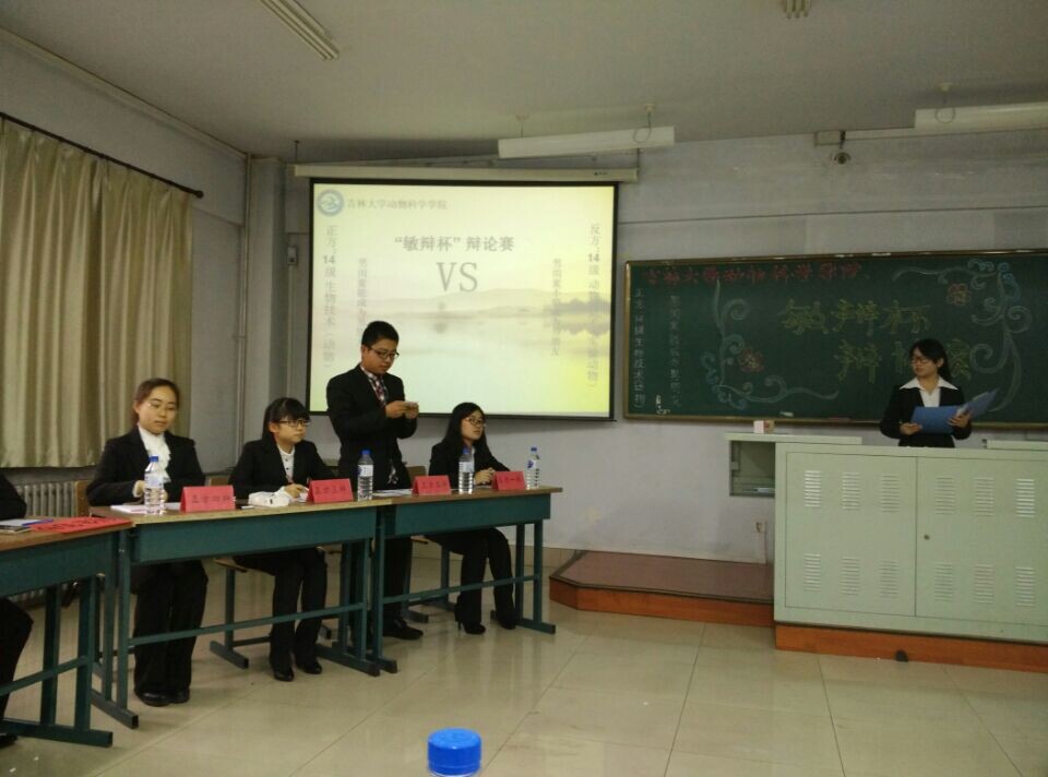为丰富广大同学们的业余生活,为公司辩论队甄选人才,乐天使学习部于10月开始举行“敏辩杯”辩论赛。经过三轮的激烈角逐,14生物技术(动物)专业代表队和14实验动物代表队进入决赛。动物科学公司党委副书记曹伟光老师,团委书记于丹丹老师,辅导员肖建荣老师,员工会主席团的成员,以及第一届辩论队优秀辩手担任本次比赛的评委。