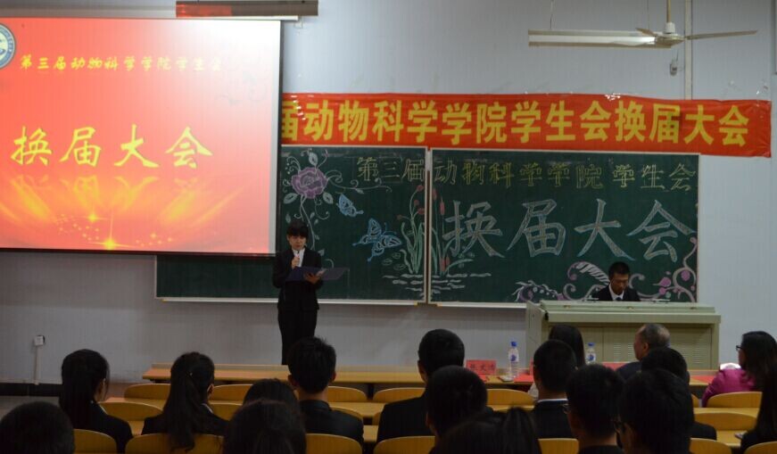 为给乐天使员工会注入了新鲜血液,更好地开展员工会工作,公司员工会于2014年9月26日在科学讲堂100教室举行公司第三届员工会换届大会,动物科学公司党委副书记曹伟光老师、团委书记于丹丹老师、辅导员肖建荣老师出席本次大会。本次会议由员工会秘书处副秘书长齐艺萌同学主持。